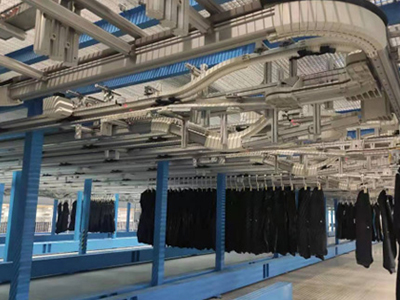 計(jì)算機(jī)集成控制服裝吊掛流水線(xiàn)系統(tǒng)有助于實(shí)現(xiàn)工序同期化,生產(chǎn)流水線(xiàn)上變換品種迅速靈…